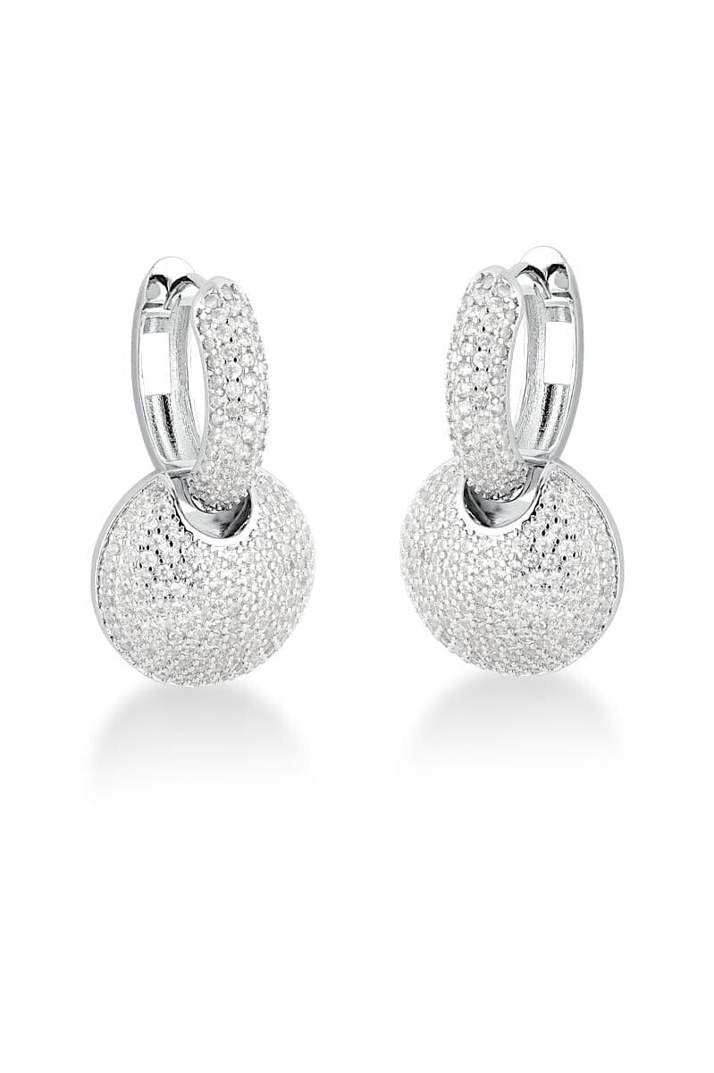 Brinco 2 em 1 com pendente removível banhado a ródio e cravejado com zircônias brancas.