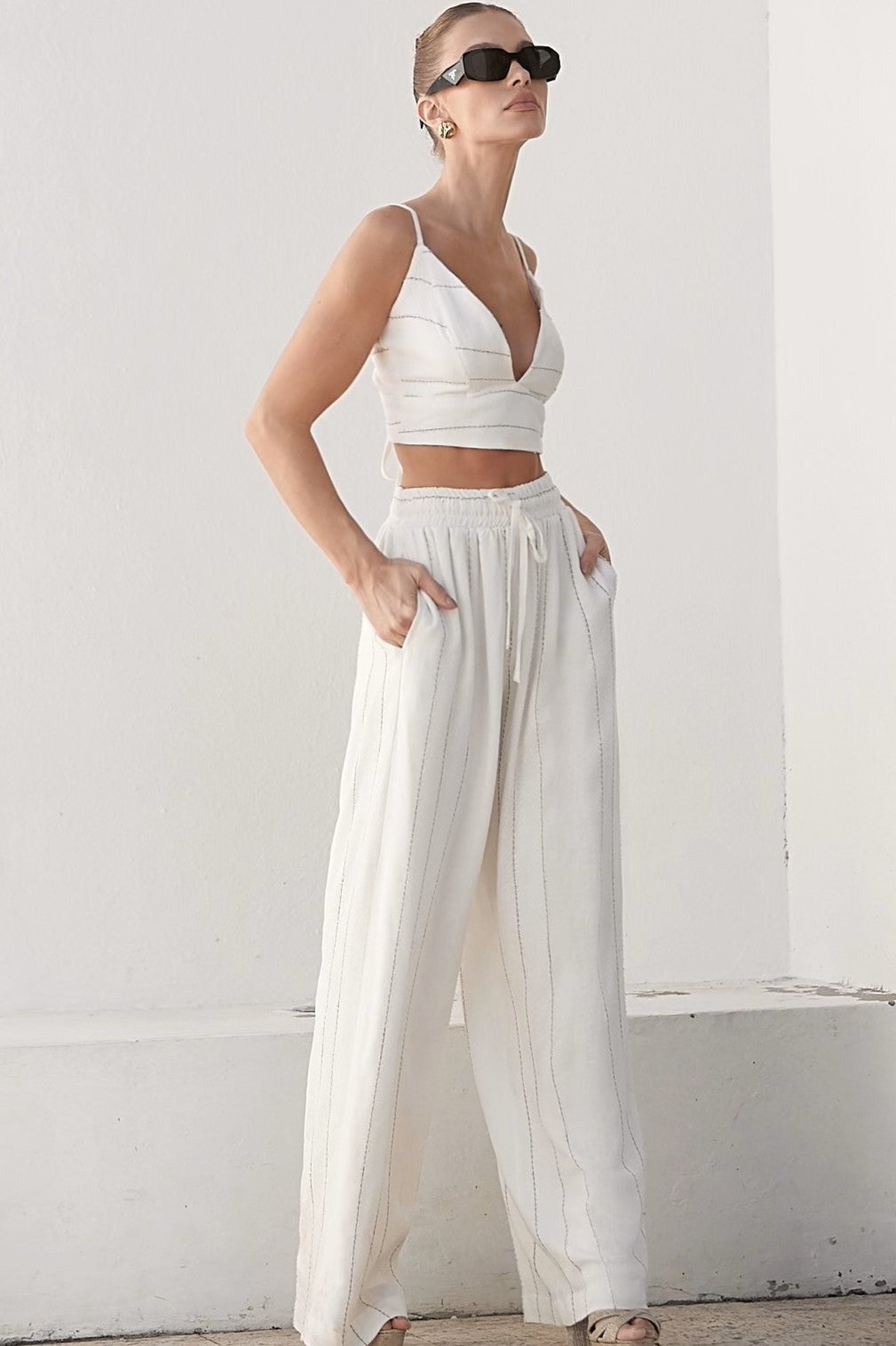 A calça, confeccionada em linho e algodão, é a combinação perfeita de leveza e conforto, proporcionando um caimento impecável e um toque de sofisticação em cada detalhe.