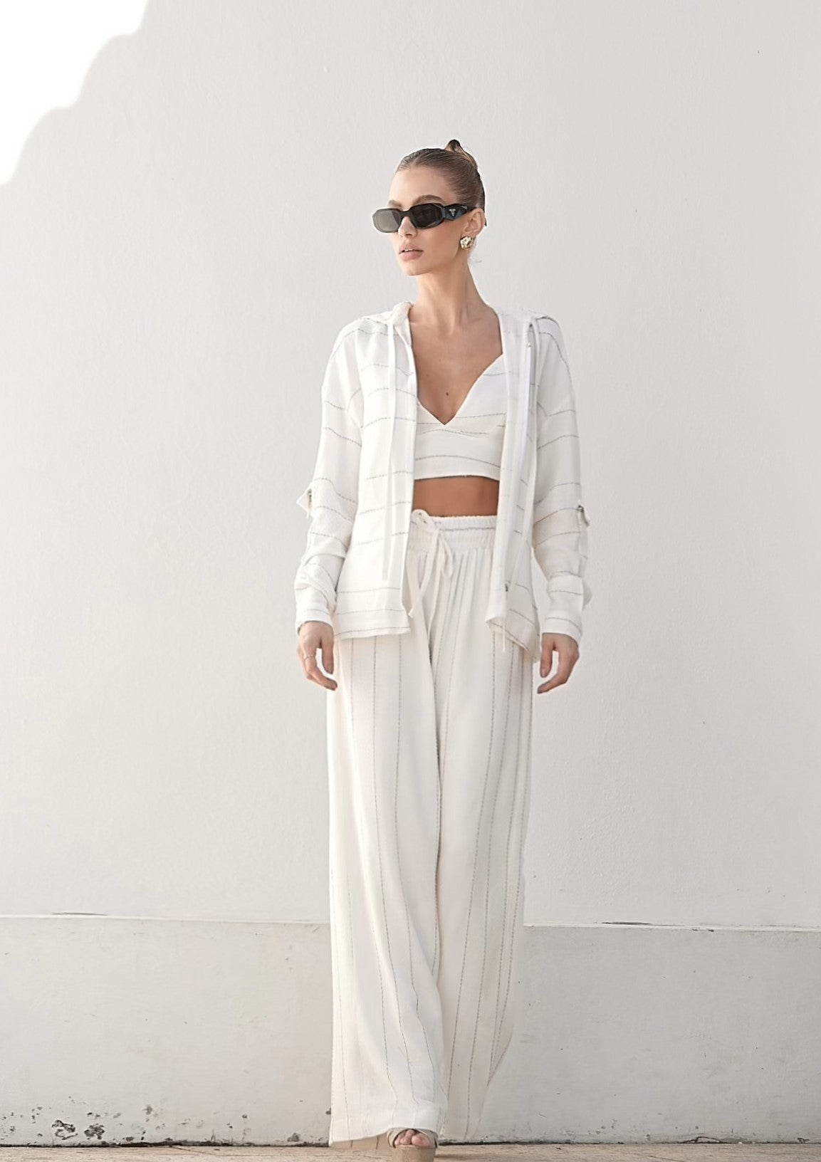 Esse conjunto versátil é a escolha certa para diversos momentos do dia a dia, desde passeios descontraídos até eventos mais formais. A beleza do tecido em linho e algodão realça a elegância de cada peça, conferindo um visual requintado e leve ao mesmo tempo.