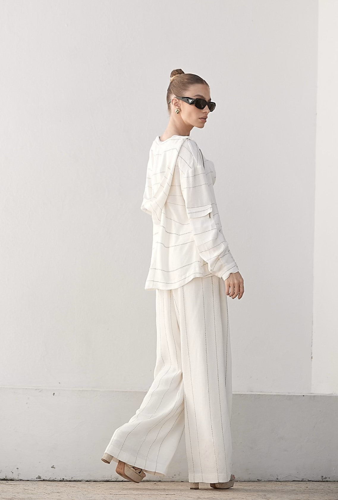 Esse conjunto versátil A camisa, confeccionada em linho e algodão, é a combinação perfeita de leveza e conforto, proporcionando um caimento impecável e um toque de sofisticação em cada detalhe.é a escolha certa para diversos momentos do dia a dia, desde passeios descontraídos até eventos mais formais. A beleza do tecido em linho e algodão realça a elegância de cada peça, conferindo um visual requintado e leve ao mesmo tempo.