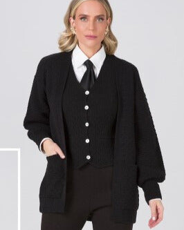 O Casaco Bruna Trico é fabricado com tricô de altíssima qualidade. Seu design exclusivo garante durabilidade e conforto, essenciais para seu dia a dia. Aproveite o melhor em qualidade e estilo.