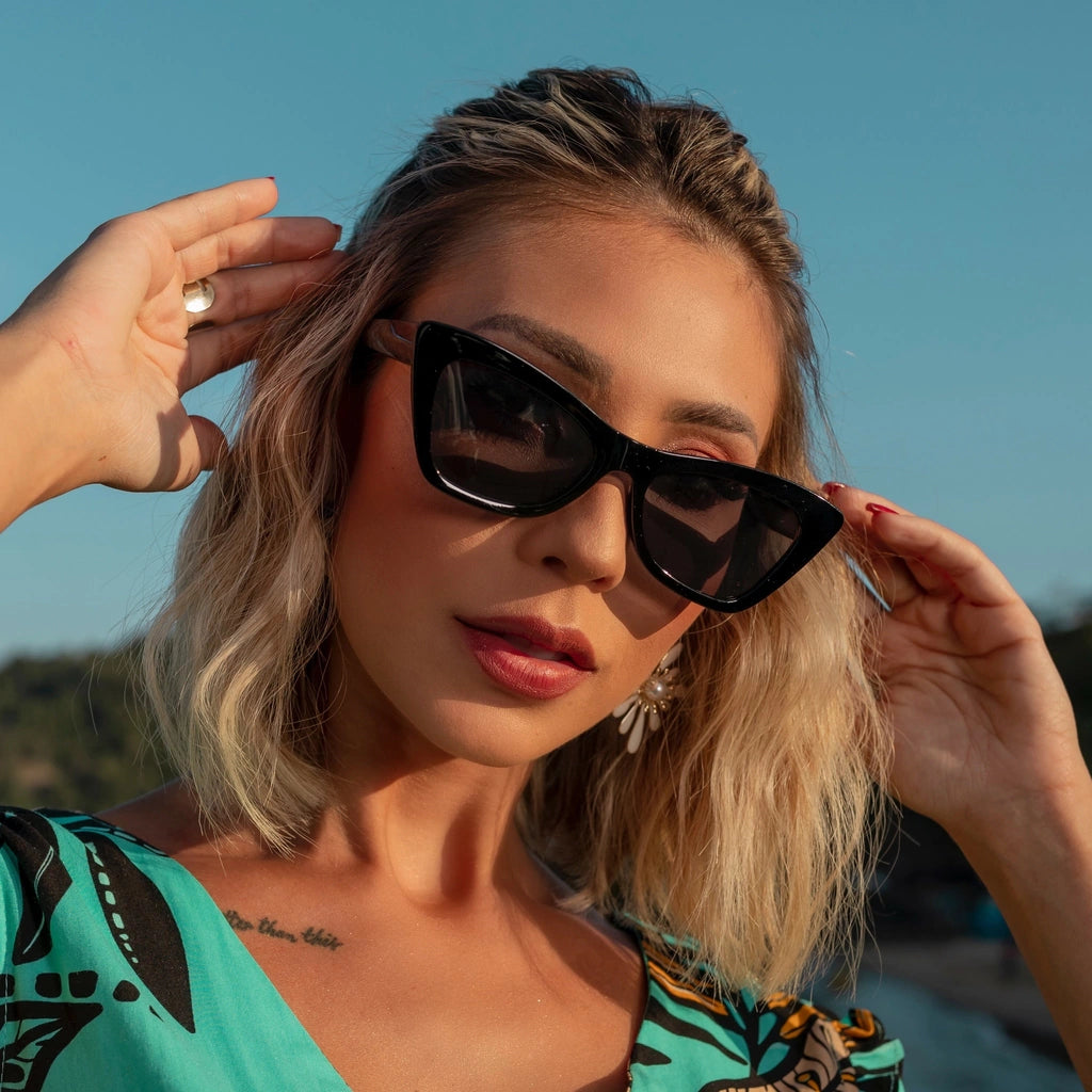 Óculos de Sol com garantia de proteção UV 400, modelo gatinho em acetato.