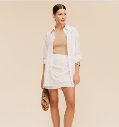 Shorts saia confeccionado em linho, com caimento reto, tecido estruturado e resistente. Possui pence traseira. Fechamento no traseiro com zíper invisível. Destaque na saia frontal com pregas na lateral, que proporciona um look único e moderno.