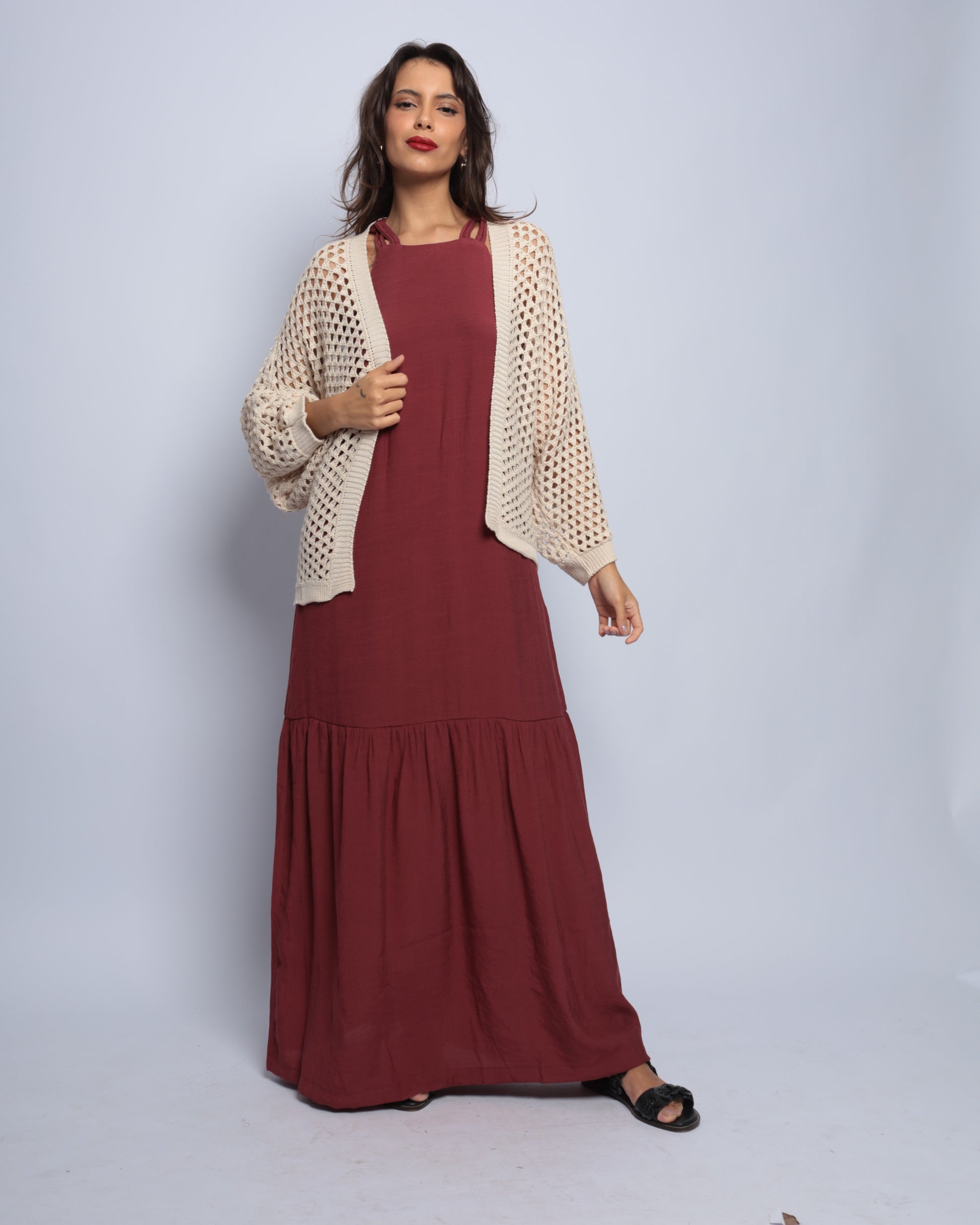 Detalhe de nó com cordão encapado do próprio tecido na alça
