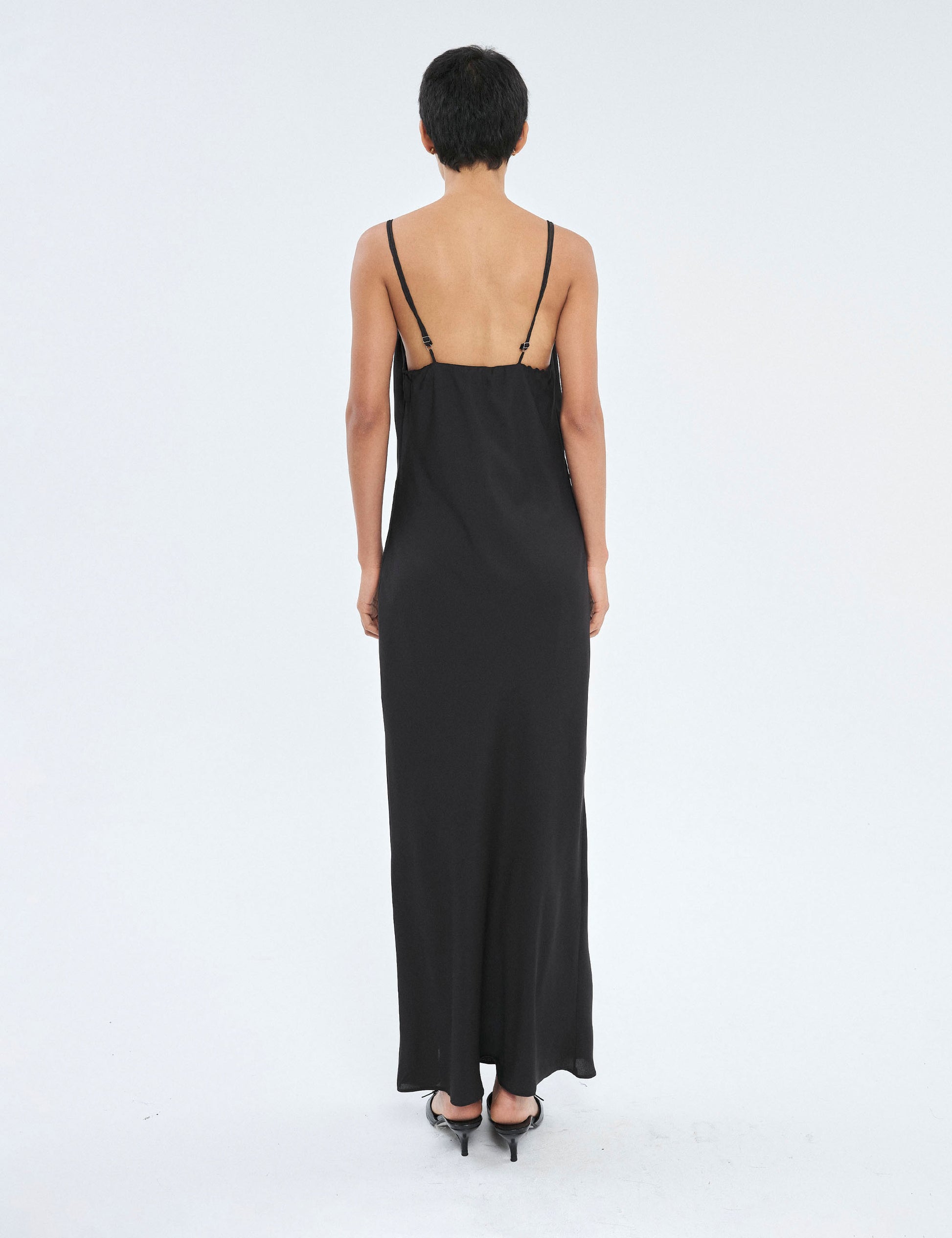 Com um decote degagê e alças ajustáveis com regulador, este vestido oferece uma silhueta delicada e feminina. O comprimento longuete e o shape solto adicionam um toque de sofisticação e versatilidade à peça. Destaque para a barra de lenço, que confere um detalhe sutil e elegante ao visual. Além disso, o forro embutido garante conforto e discrição ao usar o vestido.Com um estilo minimalista, este modelo é ideal para diversas ocasiões, desde eventos casuais até encontros mais formais. Seu decote enfatiza a feminilidade de forma sutil e elegante, tornando-o uma escolha versátil e atemporal.